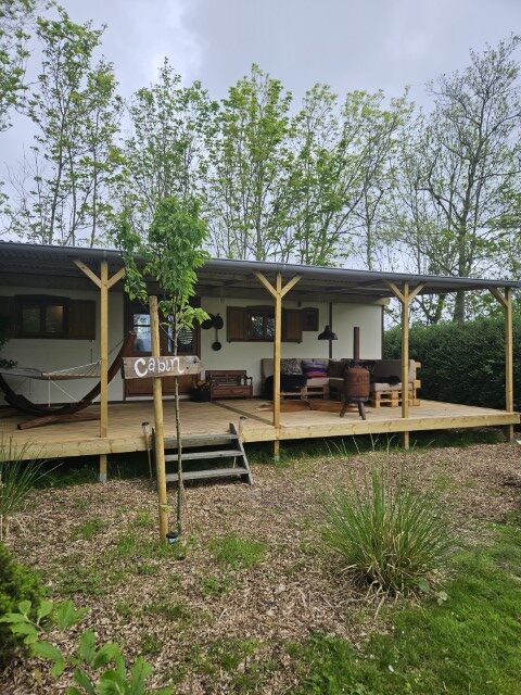 Einer gemütlichen robusten Hütte! Die Cabin verfügt über eine voll ausgestattete Küchenzeile mit Nespresso-Maschine (nachhaltige Kapseln von den Koffiejongens, erhältlich an der Rezeption), Induktionskochfeld, Kühlschrank und Kochutensilien. Es gibt 2 gemütliche Bettgestelle (insgesamt 4p) mit gemachten Betten, einen Esstisch, eine Sitzecke und ein Badezimmer mit Dusche und Toilette. Die Hütte ist gut isoliert und wird mit einem Holzofen beheizt. Hier lässt es sich auch im Winter gut aushalten!