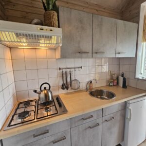 Das Ferienhaus ist für 4 Personen geeignet. Es gibt einen Schlafbereich und ein Etagenbett. Küchen mit Nespresso-Machine und Induktionskochfeld, Badezimmer mit Dusche und WC, Terrasse mit Liegestühlen und eine Aussendusche zum Abspülen des Sandes nach einem Tag am Strand.