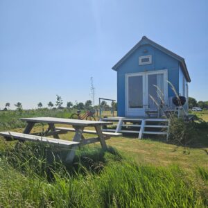 Übernachten Sie in einem originalen Zeeland-Strandhaus! Das Strandhaus stand am Nollestrand in Vlissingen und erhält nun ein zweites Leben auf Zilt. Das Stranshaus liegt ganz hinten auf dem Feld, im Grünen, mit Blick auf den Deich, hinter dem das Grevelingenmeer liegt.